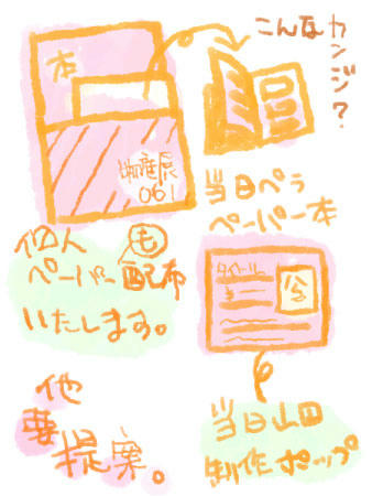 当初委託販売と記入していましたが、ニュアンスとしてはもう少し「みんなで楽しんじゃえ」的なものということで、合同サークルに記載改めさせていただいてます。
